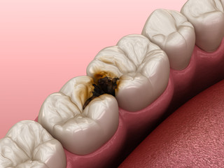 虫歯は治療せずに放置しておくと、自然治癒することなく、徐々に進行していきます。最初は小さな穴であったものが、だんだん大きくなり、治療するにも大きな痛みを伴うようになります。違和感を覚えたら、すぐ歯科医で診てもらいましょう。